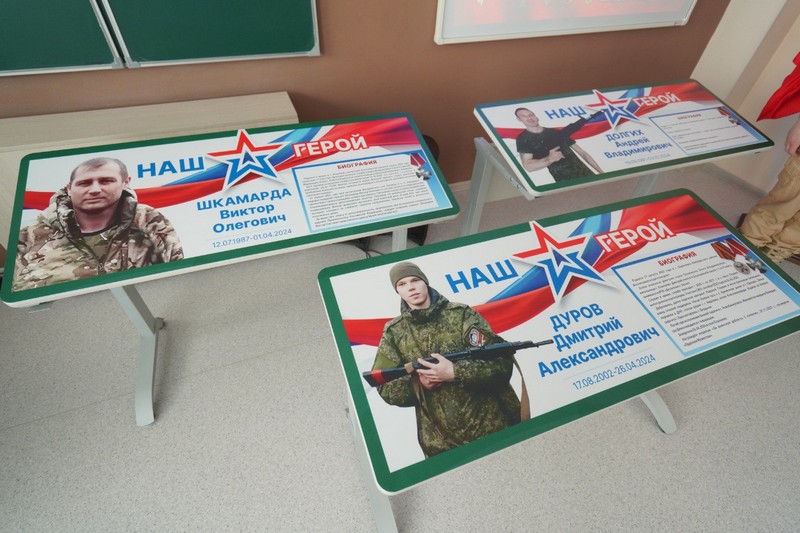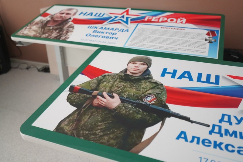 В школе села Елыкаево открыли три таких парты. Они будут хранить память о выпускниках-героях. Дмитрий Дуров, Виктор Шкамарда и Андрей Долгих приняли участие в специальной военной операции, награждены орденом Мужества посмертно.