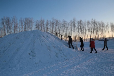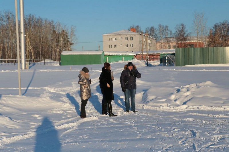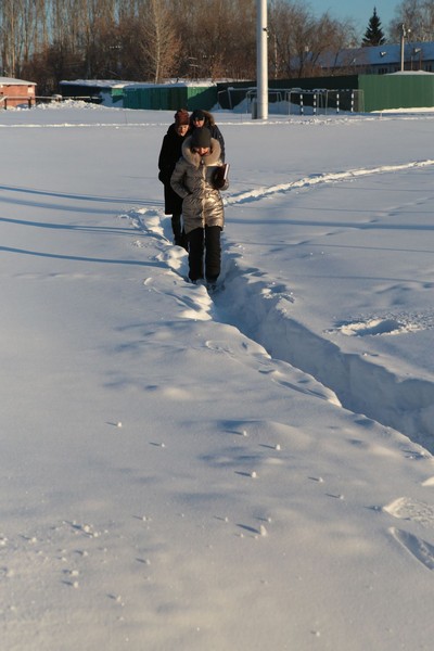 Посетили стадион. Поле для игры в футбол от снега расчищено в отличие от пешеходных тропинок, по которым к нему возможно добраться.