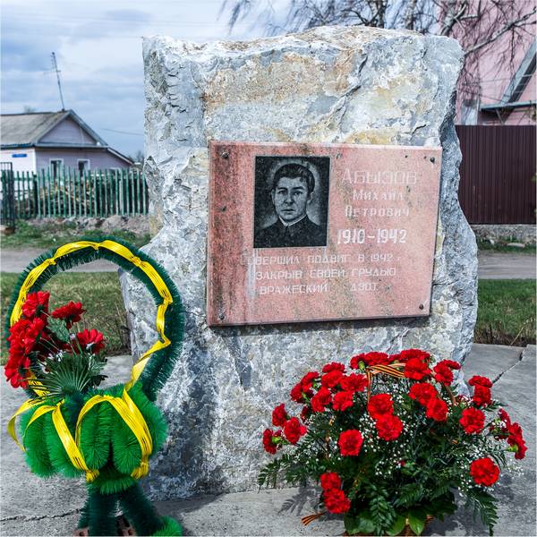 Летом 1942 года дивизия, где служил Михаил Абызов, вела бои за город Воронеж. Во время штурма города он вырвался вперёд с ручным пулемётом и открыл огонь по вражескому дзоту. Когда пулемёт вышел из строя, Михаил Абызов бросился на дзот с гранатой, взорвав его вместе с собой. Ценой своей жизни герой обеспечил победу в бою.