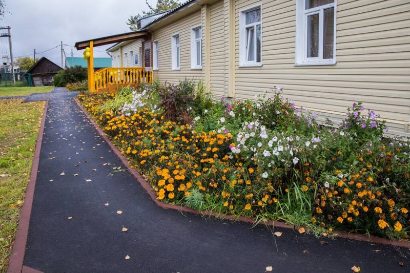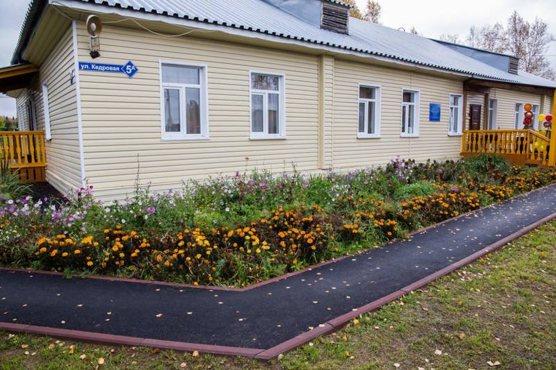 Отремонтирован цоколь здания и отмостка. Центр посёлка стал выглядеть более современным, а обновлённый детский сад понравился и детям, и их родителям.