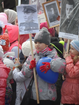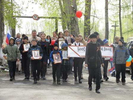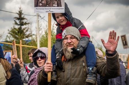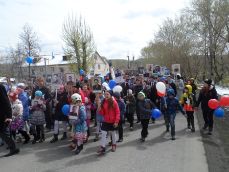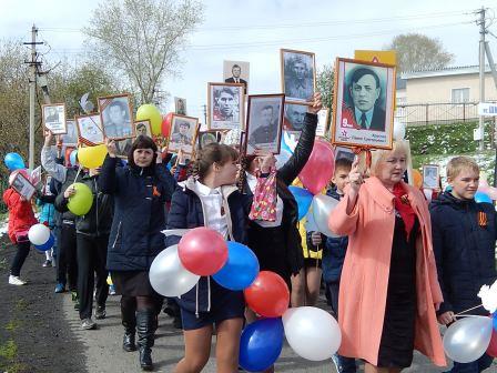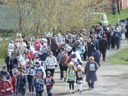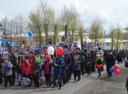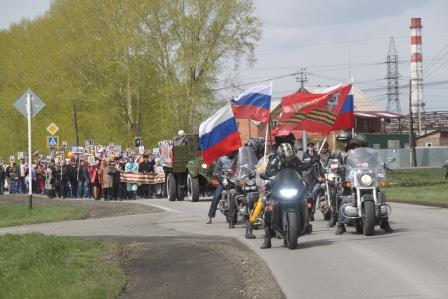 В пос. Металлплощадка шествие возглавляли байкеры, затем ехала знаменитая «полуторка». Впереди колонны шли ветераны. Во время движения пели песни военных лет. Завершилось шествие возложением георгиевской ленты к памятнику павшим землякам и запуском в небо красных шаров.