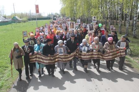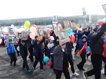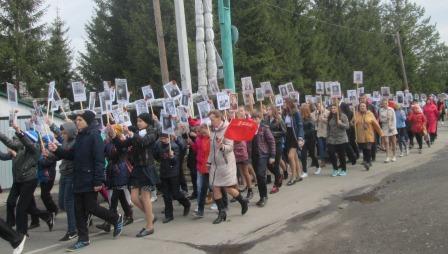 Почтить память своих родных и близких пришли жители сел и деревень. Они несли главные семейные реликвии - фотографии и портреты своих предков – фронтовиков, узников концлагерей, жителей блокадного Ленинграда и тружеников тыла. Колонны, украшенные российскими флагами и шарами, прошли по улицам сельских поселений.