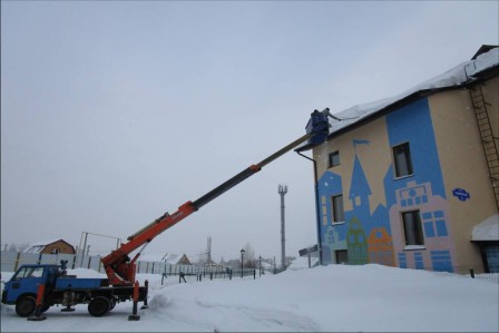 В посёлке Металлплощадка, помимо расчистки жилых кварталов, продолжается работа по ликвидации снежных шапок с кровель учреждений социальной сферы: на здании детского сада «Изумрудный город» и поселковой амбулатории.